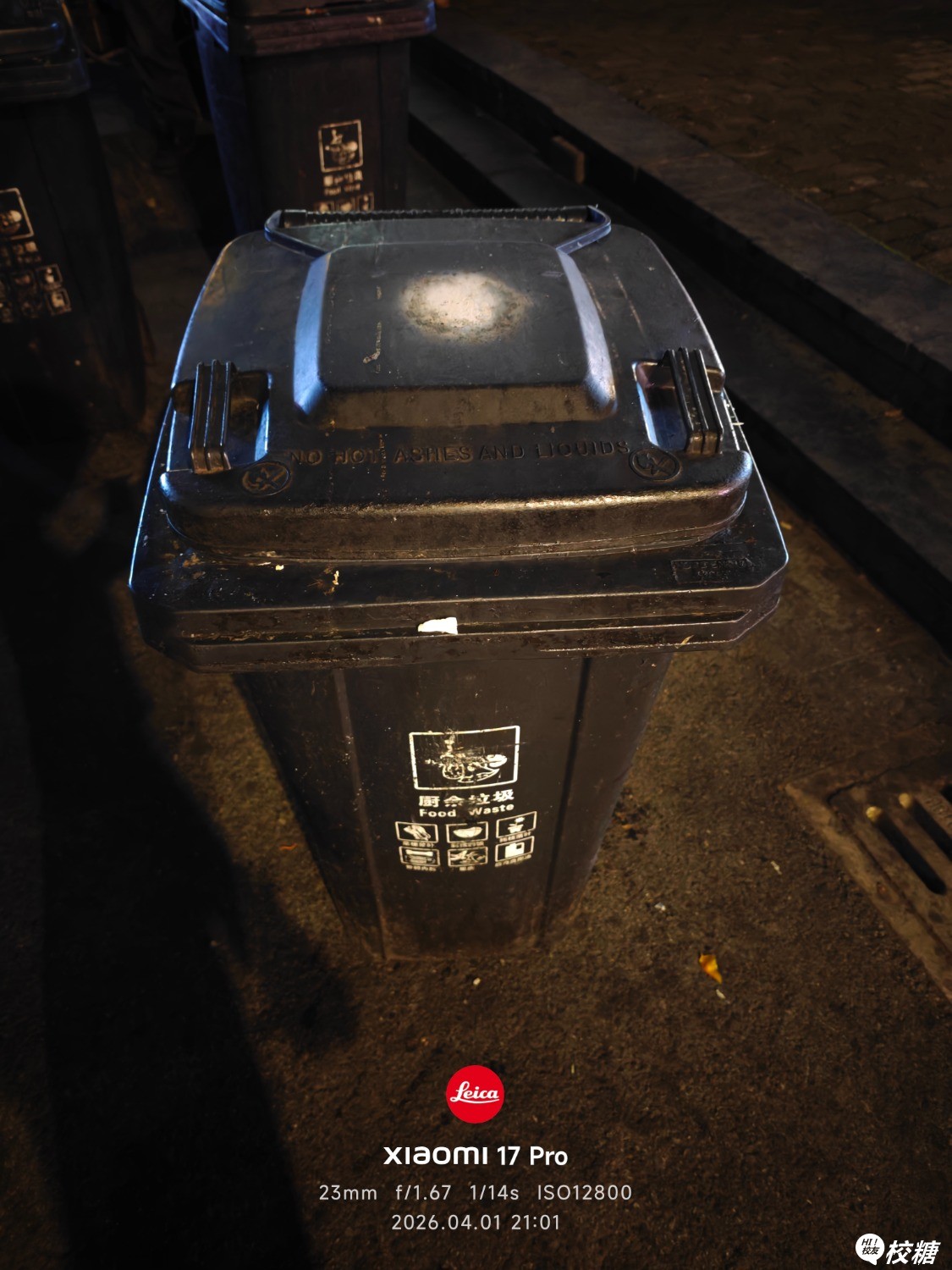 晚上看到一个垃圾桶